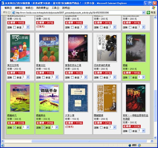 螞蟻》、《螞蟻時代》、《螞蟻革命》在活動中都是打74折,但是在各書自己的頁面上卻是7折!