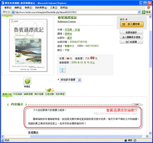 截圖來源:博客來-魯賓遜漂流記