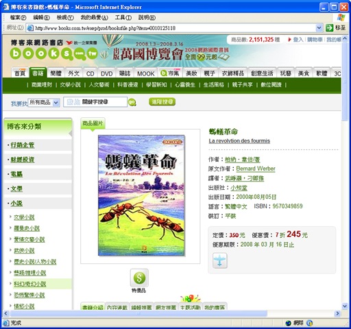 20080517_DSC03219 今天要和大家分享的是法國新銳作家「柏納韋柏」所撰寫的科幻小說「螞蟻三部曲」中的首部曲-「螞蟻