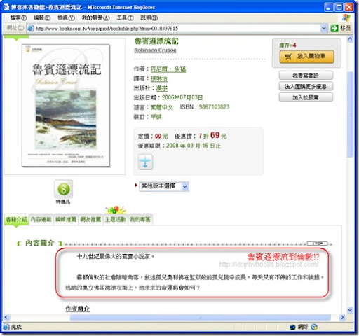 截圖來源:博客來-魯賓遜漂流記